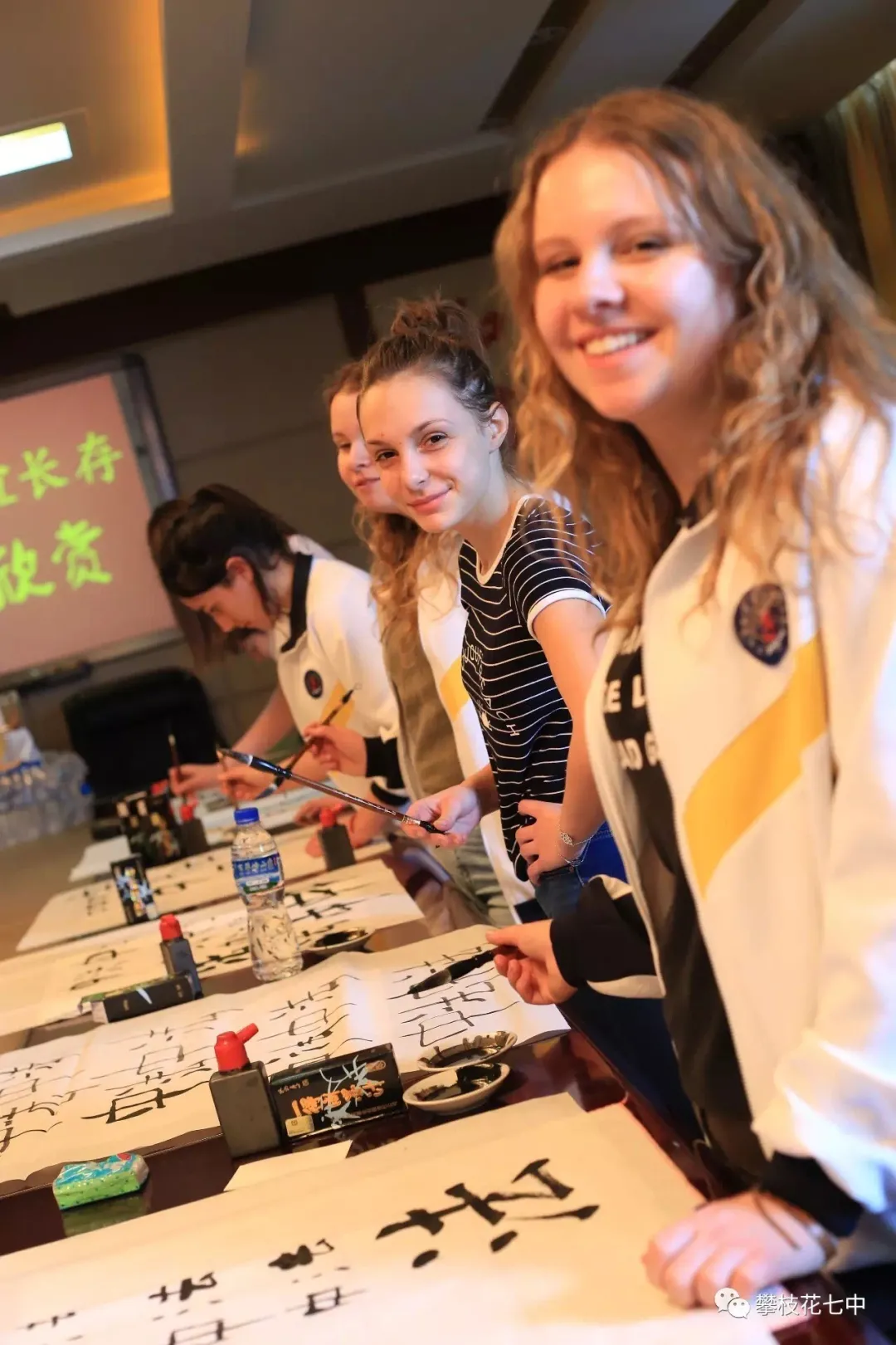 里尔拉塞尔高中学生来访七中——学习毛笔字