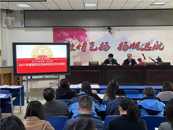 根据学校党委统一安排部署,市七中第三党支部于2022年1月13日下午在花城校区四楼学术报告厅召开2021年度组织生活会并开展民主评议党员,会议由第三党支部书记郭刚同志主持,市七中党委书记、校长杨鸿同志参加会议。