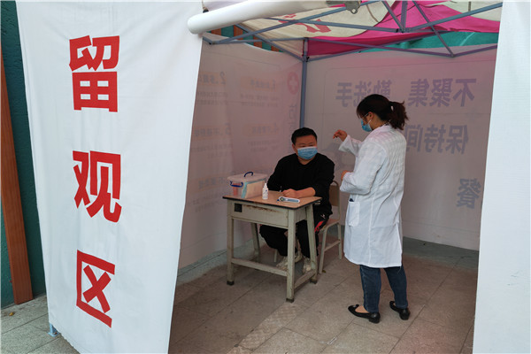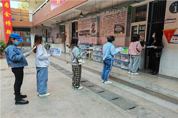 工作人员模拟学生返校的防疫工作流程,预设可能出现的紧急情况,从查验健康码、行程码、健康检测卡,保持“一米线”,检测体温,“可疑人员”留观等环节开展演练。