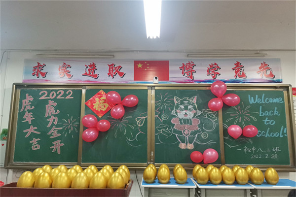 牛辞胜岁,虎跃新程。2月20日,寒假余额清零,攀枝花市七中初中部全体同学重返校园,迎来新学期第一天。为丰富校园文化生活,初中部开展了一系列丰富多彩的迎新活动,和同学们共同迎接新学期的到来。干净整洁的教室、精美的黑板报、用心的小礼品……班主任们花足巧心思,提前准备,给返校的学生们送上了满满的惊喜。