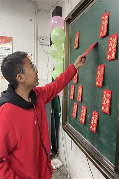有的班级利用虎元素和新年元素营造喜庆的校园氛围,开展新学期拆“红包”活动,同学们走上讲台拆取属于自己的“专属红包”,现场氛围感满满。有的班级开展“砸金蛋”活动,每个“金蛋”里都有不同的惊喜小礼品,同学们的笑声填满了教室。小小惊喜饱含着深情,这份老师们精心准备的“仪式感”寄托着对同学们新学期的祝福与期望,让同学们感受到班级和学校大家庭的温馨,从而主动、快速地融入校园生活。