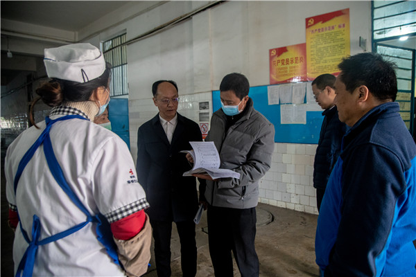 彭格一行来到学校食堂,仔细询问了工作人员的健康状况,查看了食堂进货、留样记录等资料,他强调,食堂工作人员要以高度的责任感重视饮食安全,加强自我防护,确保食堂安全零事故,确保全校师生吃得安心、舒心、放心。