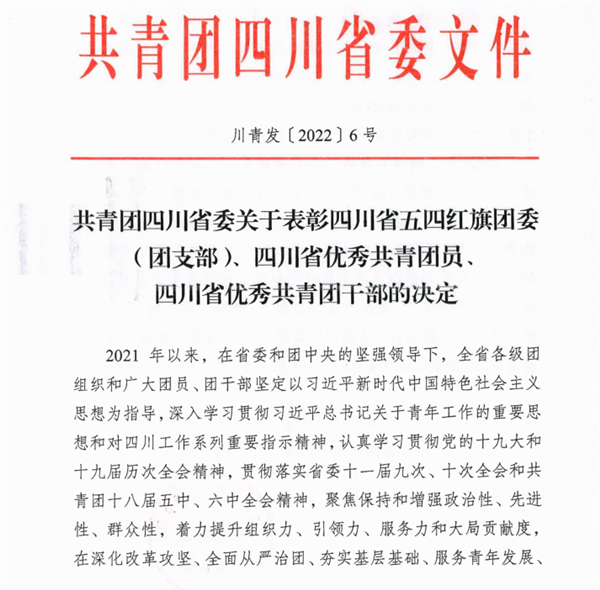 近日,共青团四川省委发布了关于表彰四川省五四红旗团委(团支部)、四川省优秀共青团员、四川省优秀共青团干部的决定。