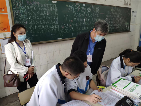 督导专员深入课堂和教师办公室,实地查看了师生行课的情况,详细询问了作业布置、教辅征订与使用、校本教材和课程建设的情况,查阅了老师们批改作业的记录。对学校分班分层设计作业并认真批改的情况表示肯定,认为学校较好地落实了课后作业管理和课后管理服务。