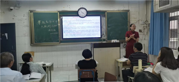 高二语文备课组的张琼老师则从高考命题的原则和方向、应考的策略和技巧等方面,充分运用小专题训练和变式训练,强调回归教材,落实知识,训练能力,给老师们很大启发。