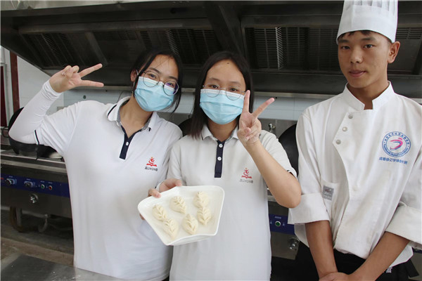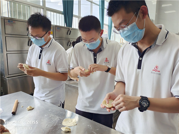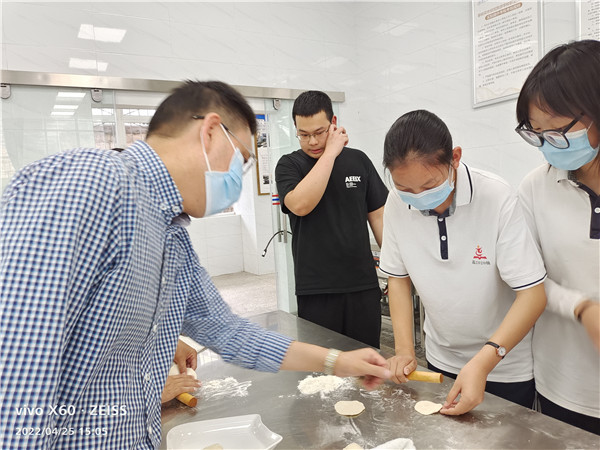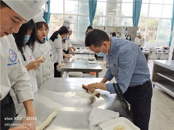 一身整齐的厨师装,一根顺溜的擀面杖,一张转动的面皮,这是中式面点室的“师傅”们正在练习包饺子。此情此景,让在场的学生和老师们摩拳擦掌、跃跃欲试,在面点师傅们的指引下,同学们洗了洗手,迫不及待行动起来了,看着师傅们熟练的手法,再看看自己的劳动成果,孩子们都笑了。吴俊副校长对学生们说道,经过大家的实践,我们应该发现,每一项工作都是不容易的,每一个劳动都值得被尊重,同时我们也应该养成爱劳动的好习惯,在家也可以帮助家长做一些力所能及的事情,把学习和劳动结合起来。
