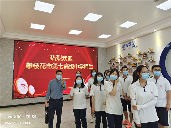 经过了测体温、扫场所码、检查行程卡等一系列防疫流程,同学们在引领员的带领下,来到了攀枝花市经贸校的展示大厅,这里为我们展示了“攀西康养膳食”以及“特色菜品”,还有满满的“荣誉墙”和“领导关怀”,让学生们赞叹不已。同时,吴俊副校长也为同学们介绍了学校的概况,让学生们更深入地了解了攀枝花市经贸旅游学校。