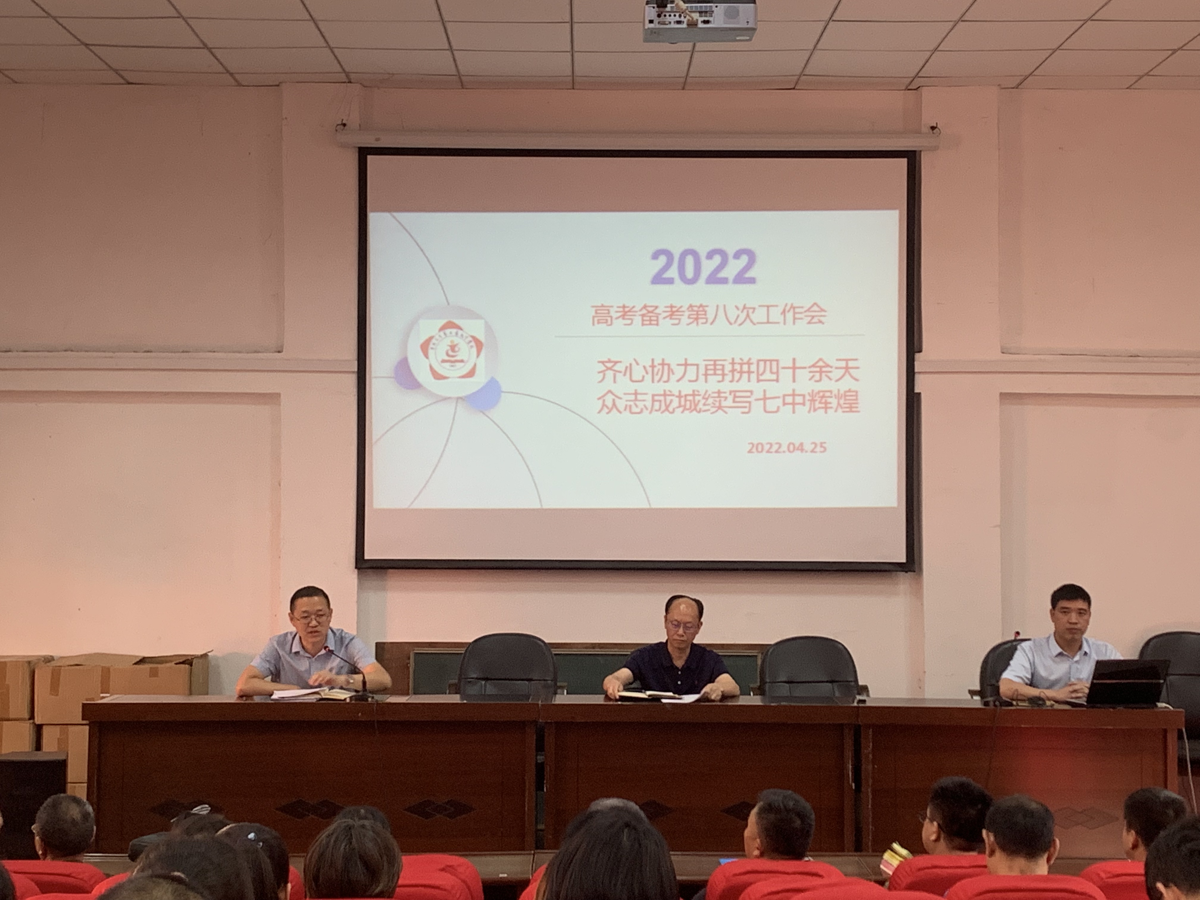 4月25日下午,2022届在西城校区第三报告厅召开高考备考第八次工作会。2022届高考领导小组成员、高一年级主任、高二年级主任、教务科科长,以及高三全体教师参加。会议由2022届分管副校长代座城主持。