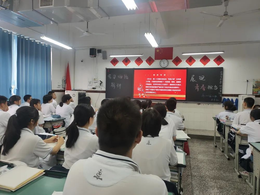团会中,各班同学还回顾了冰雪健儿苏翊鸣在运动场上的精彩表现,用一声声欢呼和惊叹表达了对冰雪健儿的崇拜,进一步激发了同学们踏实求学、刻苦锻炼,为国争光的赤子之心。