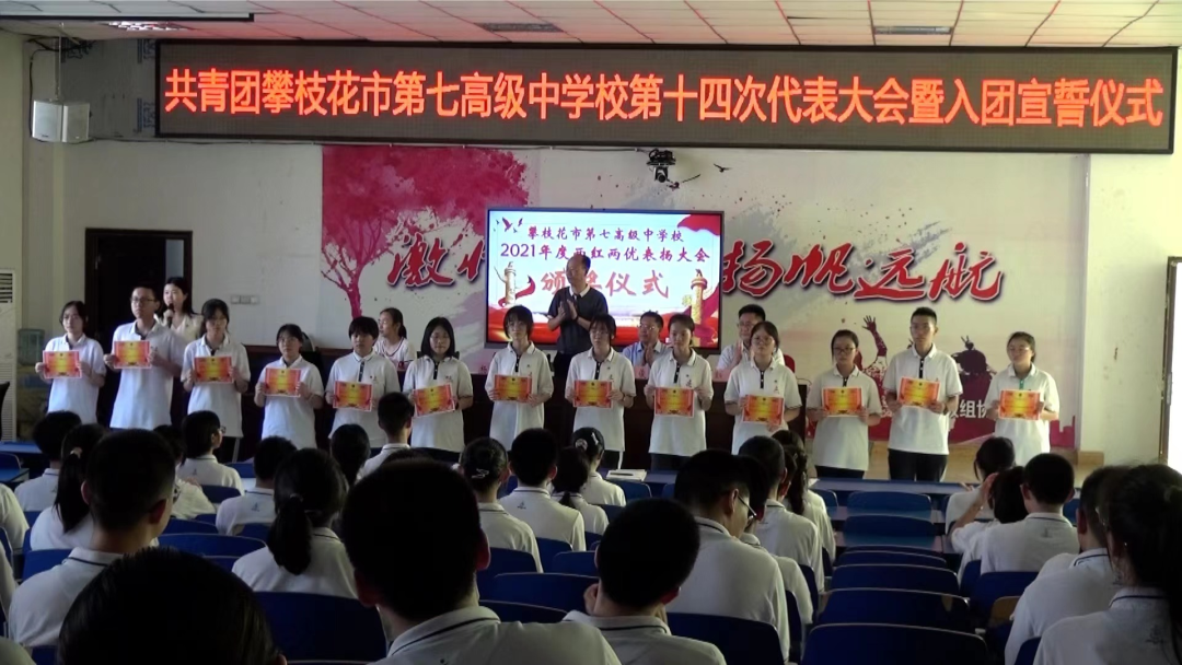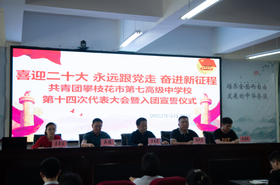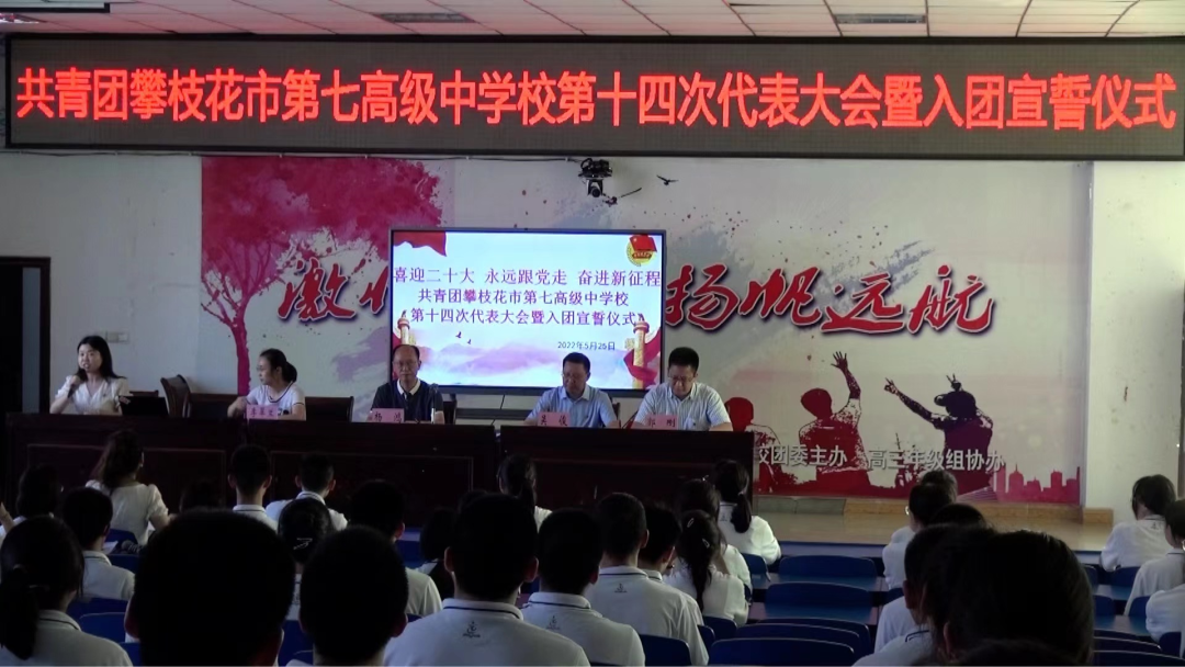 5月25日,共青团攀枝花市第七高级中学校第十四次代表大会在学校会议大厅召开。学校党委书记、校长杨鸿,党委副书记、纪委书记汪建明,副校长吴俊、赵均勇,学校相关职能部门负责人、各教学部主任、各团总支书记以及143名师生代表参加会议。大会由团委书记左青秀主持。大会在庄严激昂的国歌声中拉开帷幕。