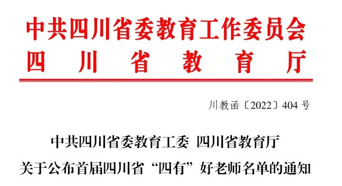 为深入学习贯彻习近平总书记来川视察重要指示精神和习近平总书记关于教育的重要论述,加快建设一支有理想信念、有道德情操、有扎实学识、有仁爱之心的卓越教师队伍,四川省委教育工委、四川省教育厅开展了首届四川省“四有”好老师遴选活动。