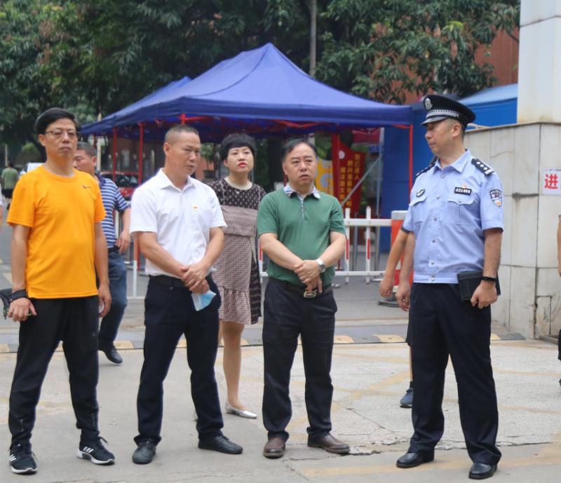 雷启贵部长和郭建勋副区长一行实地考察了市七中学生食堂、视频监控和听力播放室等重点场所,查看了体温检测设备、防疫物资储备、高考考场分布和发热考场设置等情况。市七中校长范志就高考考点布置、疫情防控安排、应急演练预案、食品卫生安全、交通安全和学生离校安排等事项进行了汇报。