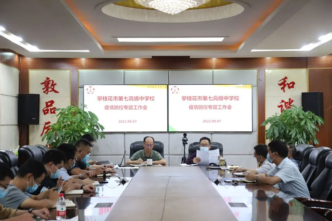 为及时了解各部门疫情防控工作的最新进展,研判疫情防控形势的变化,9月7日下午,在防疫条件允许的情况下,市七中在西城校区博通楼四楼会议室召开了疫情防控专题工作会,校级班子成员、各教学部和相关部门负责人参加会议,会议由学校党委书记、校长杨鸿主持。
