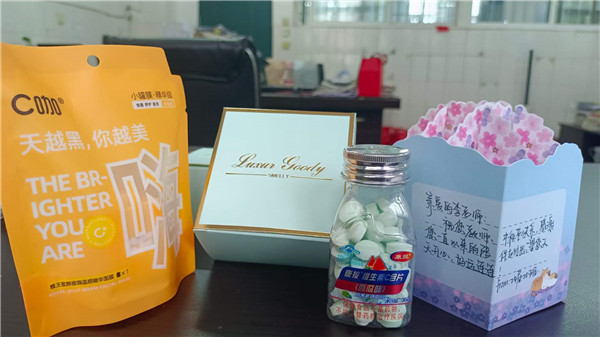 一早大老师们来到办公室备课,桌上便摆放着鲜花、贺卡、月饼等小礼物等,那是学校、年级和班上学生为老师们特意准备的心意。老师们心理乐滋滋的,朋友圈里也晒了一波幸福。