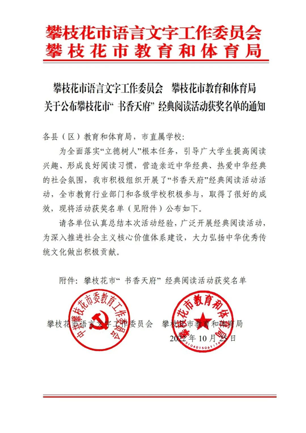 同时戚家铭、王妤萱同学将于2022年11月代表攀枝花市参与“书香天府·阅读之星”全省复赛和决赛!在此预祝两位同学“凯旋”!