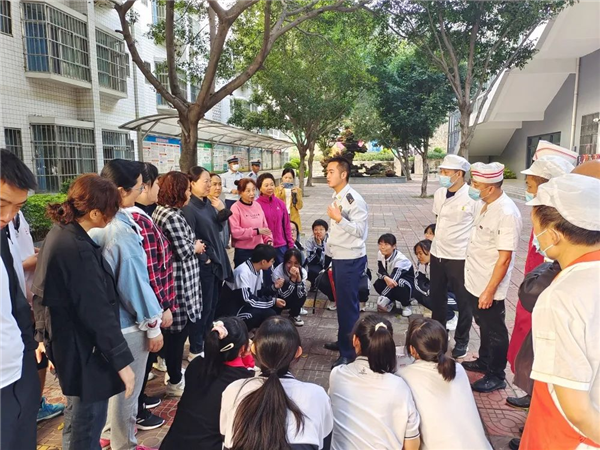 为进一步提高后勤工作人员的消防安全意识,副站长彭鑫还针对校园的消防安全对生活老师、食堂工作人员、保安进行了现场培训。