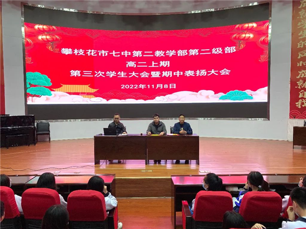 前方的困难挡不住青春的激情,奔向梦想的勇士整装再出发!为提升全体学生的学习自觉性、积极性,激励同学们不断超越、勇攀高峰。2022年11月7日、8日晚上,我校第二教学部两个级部在西城校区通楼会议室分级部召开了高二(上)第三次学生大会。年级管理团队、全体班主任和高二全体学生参加会议。