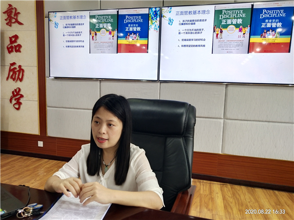 随后,美国正面管教协会认证学校讲师、花城校区韦燕老师以“育人育己齐并进”为主题,介绍了自己将以“不惩罚、不骄纵”为核心的“正面管教”融入班级管理与教育教学中的具体方法,并创设情境现场提问,教会了新教师们在不同场景下采用不同的方式鼓励学生。最后,韦老师从课堂、学生与教师三个维度展示了将“正面管教”运用到班级管理与教育教学之后所产生的正向改变。为了让新教师们能更为熟练地运用好正面管教方法,原定90分钟的分享延长到了150分钟。