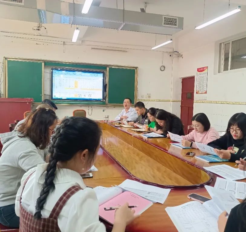 徐子耀首先宣读了各科成绩,并结合数据表做出成绩分析。他指出,各教研组要将组内分析出的问题,与各班实际情况相结合进行改进,要做到因材施教,抓实效、抓落实。各学科教师认真听取了徐主任的分析与建议,纷纷表示会抓好考后谈心、摸清学生思想状态,为后期教育教学工作的开展找到有力抓手。