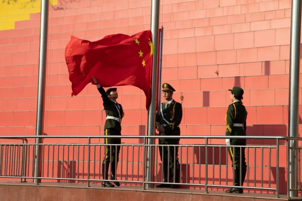 迎着朝阳,伴随着嘹亮的国歌声,鲜艳的五星红旗冉冉升起,全体师生,肃然而立。