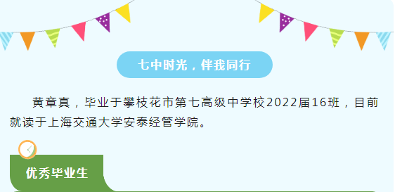 最后祝愿老师们身体健康、工作顺利,祝愿每一位正在七中就读的学弟学妹们珍惜当下好风景、下笔自有食叶声,祝福母校越办越好。最后,欢迎学弟学妹们报考上海交通大学,让我们相约夏末秋初的东川路吧!