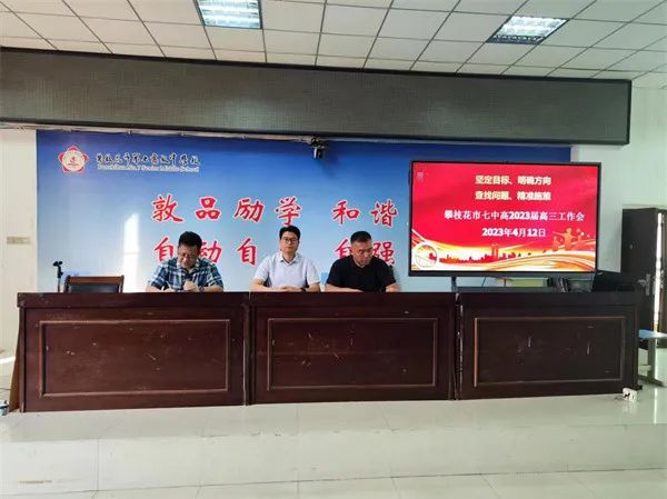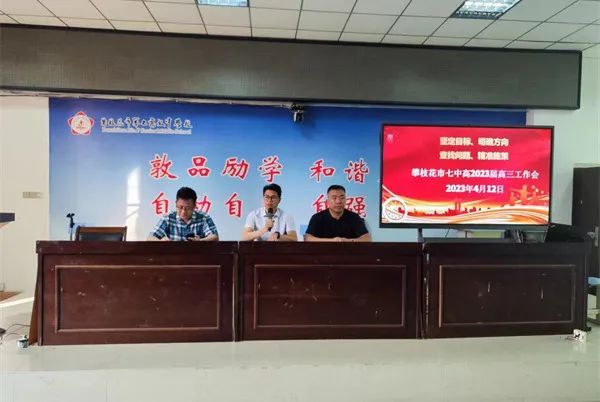 2023年4月12日下午,市七中2023届高三工作会议在花城校区学术报告厅举行。学校党委副书记、校长李刚,分管副校长赵均勇,2023届全体教师参加会议。会议由高三年级主任郭刚主持。