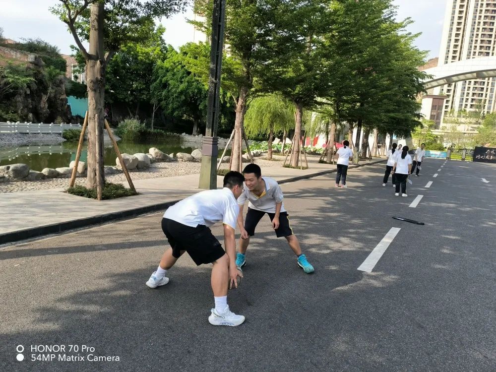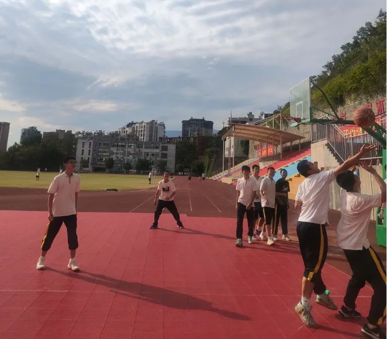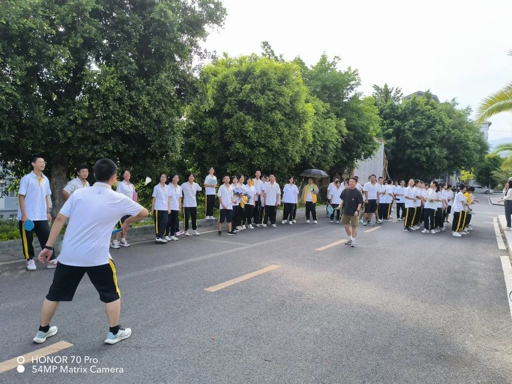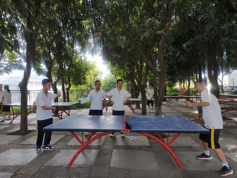 课间短暂的休息不再是趴在桌子上,走出教室吹吹清风,沐浴阳光,眺望远方,和同桌做个拍手操,掰掰手腕子,跟着热情的旋律舞动步伐,课间活动短暂却也精彩。体育课和阳光活动课更是要释放热情,调整身心。同学们在乒乓球台上你来我往,一较高下;或是挥动羽毛球拍来回飞旋,切磋球技;或是欣赏初夏的荷花,再飞掷几个灵动的水漂,或是临水而坐,投喂几个胖乎乎的锦鲤;也可以倚在池旁的石头上默默诵读《七中赋》;亦或是坐在林荫道下的小台阶上,吹着清凉的风,下一盘棋,聊聊昨天的新闻和明天的琐碎。工作一天的老师们也时常受到同学们的感染,参与到体育活动中来,引发层层围观和阵阵喝彩。