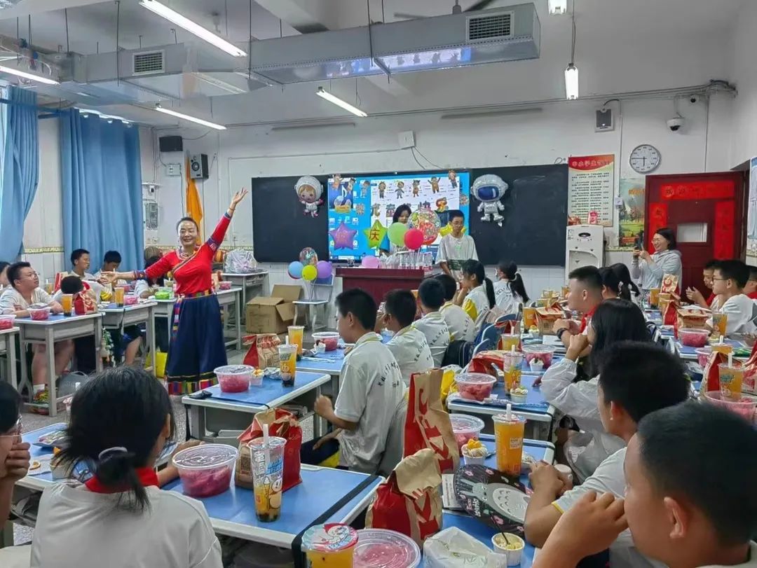 家校齐参与,爱心促成长。班主任与家长委员会的热心家长,为同学们送上节日的礼物,让同学们在学校也能感受到父母深切的关怀与殷切的期望。回顾孩子们的成长轨迹,不少家长感慨万分,部分家长准备了“孩子成长轨迹”视频。学子们通过视频回忆了自己欢乐的童年,更对未来的青春年华充满期待。