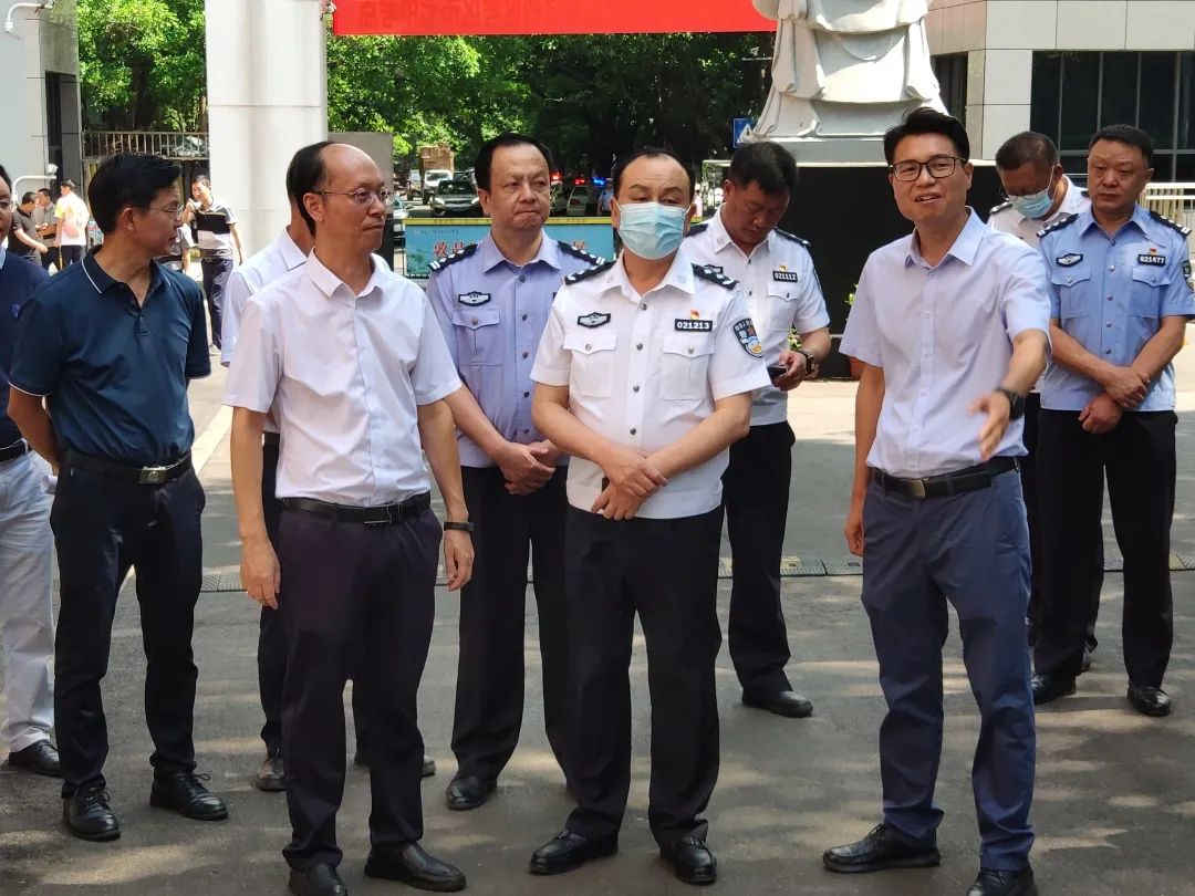 6月5日上午,攀枝花市副市长、市公安局局长周强莅临市七中考点检查高考保考工作。市公安局副局长蒋光红,西区副区长、西区公安局局长周涛,市教育和体育局总督学郭光恒等陪同检查。