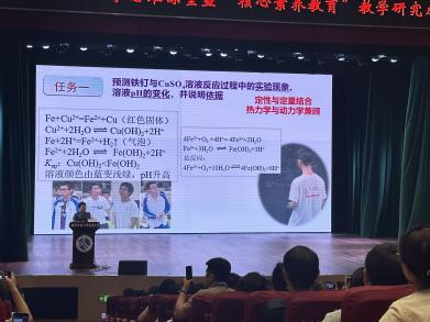 兰老师对《电解的应用》一课从电解最经典的应用、最广泛的应用、最可期的应用为逻辑线索对本节课进行了精妙设计。从建构模型、自觉使用模型、直觉利用模型,兰老师呈现了基于传统课堂进行素养取向教学的策略、思考等。白老师展示了优质高三复习课《铁与硫酸铜溶液反应的再探究》。白老师从真实问题情境出发,以学生熟悉的铁与硫酸铜反应为情境素材,通过设计四个任务探究化学中的“反常”问题,从而驱动学生探究学习。