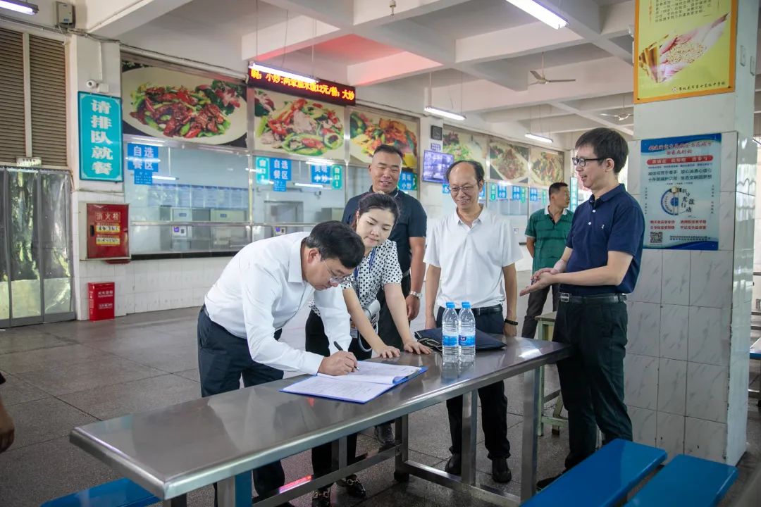 为进一步加强食品安全监管,压紧压实食品安全责任,切实保障学校师生“舌尖上的安全”,共建“食安花城”。9月22日上午,攀枝花市政府副秘书长邓杰率领行业管理相关工作人员一行先后到市七中花城校区及西城校区开展第三季度食堂食品安全督导工作。学校党委书记杨鸿,副校长赵均勇及相关人员陪同检查。