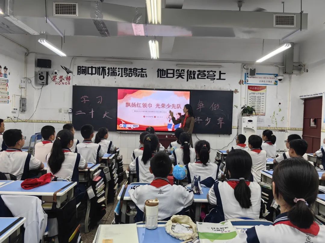 为全面贯彻落实习近平总书记关于少年儿童和少先队工作的重要论述和《关于全面加强新时代少先队工作的意见》要求,引导少先队员传承红色基因,提升少先队员的组织归属感、集体荣誉感,培养少先队员积极向党、热爱祖国的情怀,在中国少年先锋队第74个建队日来临之际,攀枝花市七中初中部于2023年10月13日开展了“学习二十大,争做好队员”少先队建队纪念日主题队会活动。活动由初中部团支部书记兼大队辅导员谢佳蓄主持,七年级优秀少先队员参与了此次活动。