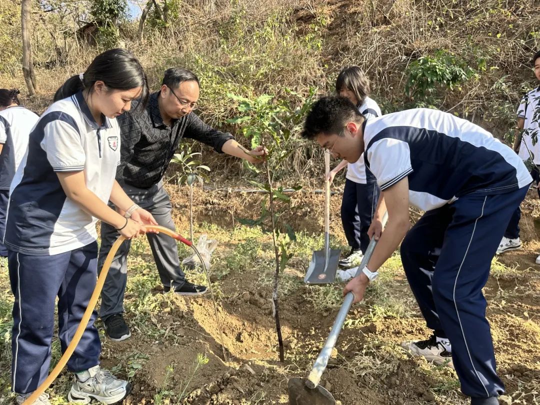 3月11日下午,攀枝花市七中郭东文卓越名师工作室领衔人郭东文老师和工作室成员余明洪老师组织高一年级学生开展2024年校园义务植树活动。
