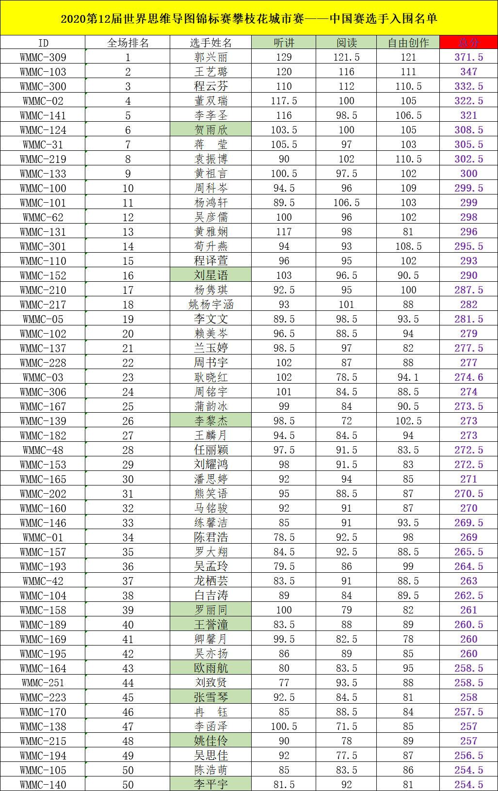 本次大赛,市7中代表队取得了非常优异的成绩,大赛排名前50名选手中,有9名同学来自市7中(标颜色部分为七中学生),成功晋级中国赛。贺雨欣同学凭借出色表现,夺得少年组季军。
