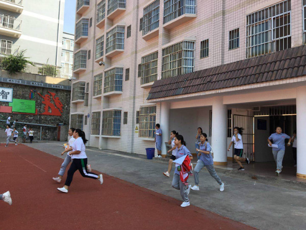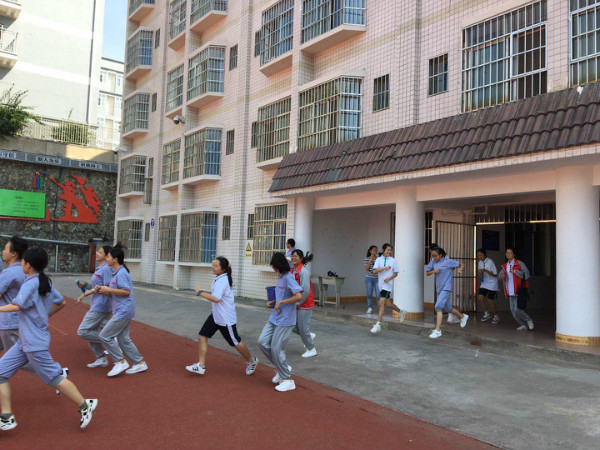 演练前,德育科、各年级部、各班主任利用时间,把这次安全演练活动的意义和要求、疏散线路及注意事项向学生进行了宣讲,各部门工作人员也按照演练方案提前到达了指定的值班地点,密切关注演练现场,并在疏散过程中做合理引导。14:10疏散指令响起,参加演练的同学立即按照生活老师的指挥,弯腰捂住口鼻,沿指定楼梯通道,迅速从宿舍撤离,按预定线路在6分钟内安全、有序地到达了操场指定位置。集合到位后,各班级及时清点并层层汇报了应到人数、实到人数、安全撤离人数等疏散情况。最后,德育科对此次演练进行了总结。