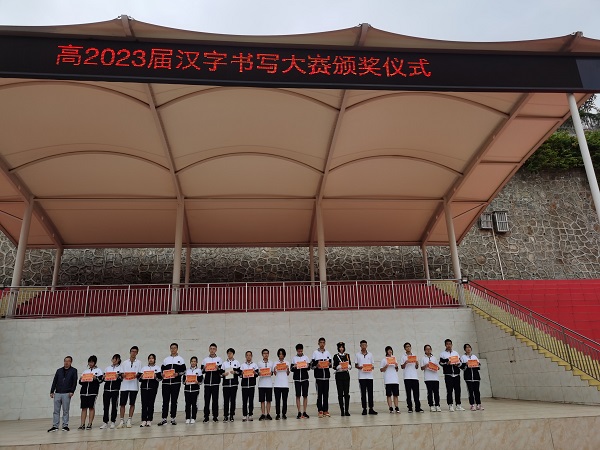 评委们从字体架构、笔画、页面布局、页面整洁四个方面进行赋分,经过近一个半小时的盲评,共评选出一等奖12人、二等奖20人、三等奖32人及优秀奖50人。并于11月2日上午在花城校区运动场举行了攀枝花市第七高级中学校高2023届汉字规范书写大赛颁奖仪式。分管行政工作副校长杨鸿、副校长税荣昌及谢子明为部分获奖学生颁奖。