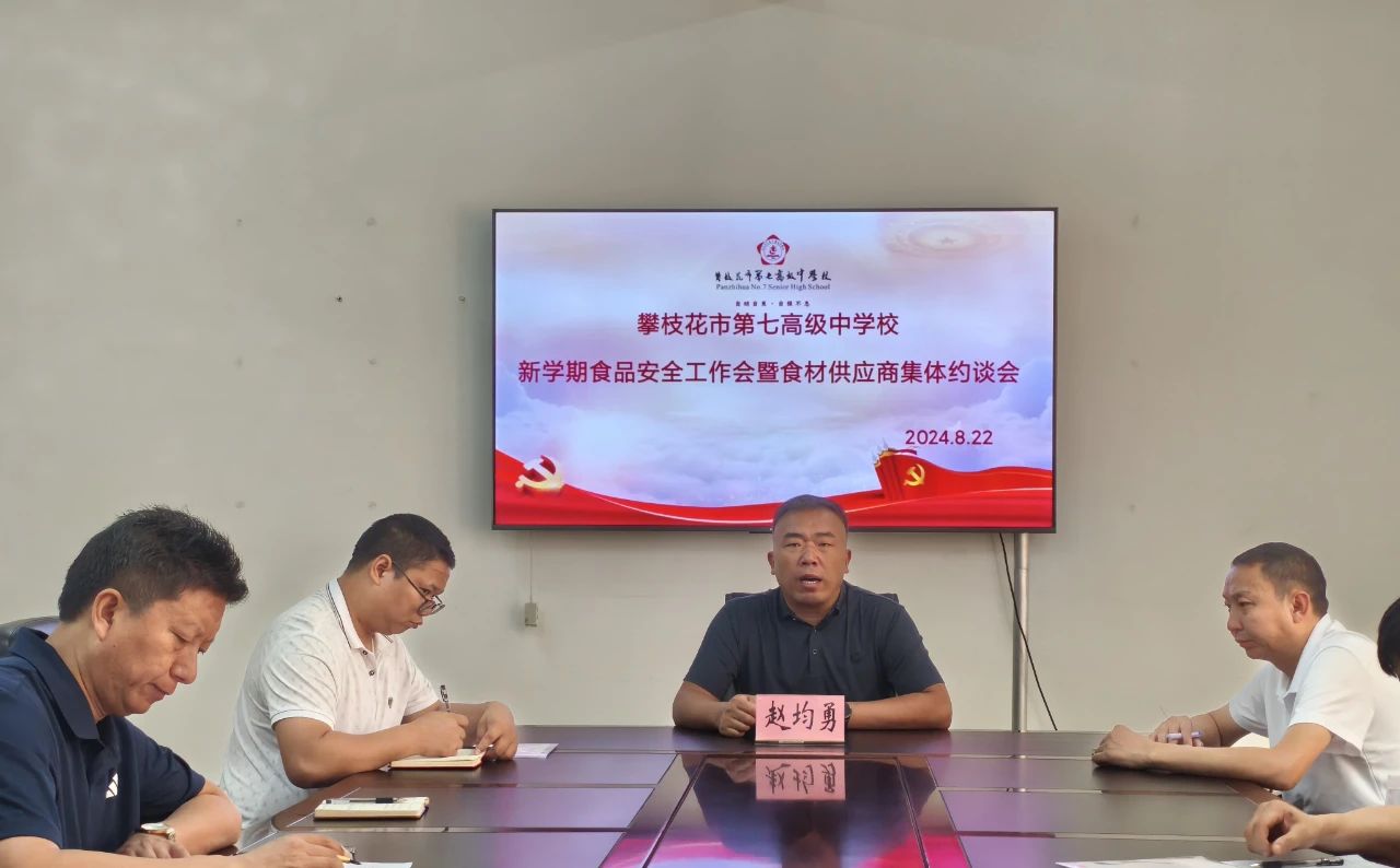 开学在即,为加强学校食品安全管理,督促食材供应商落实主体责任,从源头上把控食品质量,努力提高学校食品安全意识和服务水平。8月22日上午,我校赵均勇副校长在花城校区组织召开了2024年秋季学校食品安全工作会暨食材供应商集体约谈会。总务安全科负责人、食材供应商及学校食堂管理等人员参加会议。