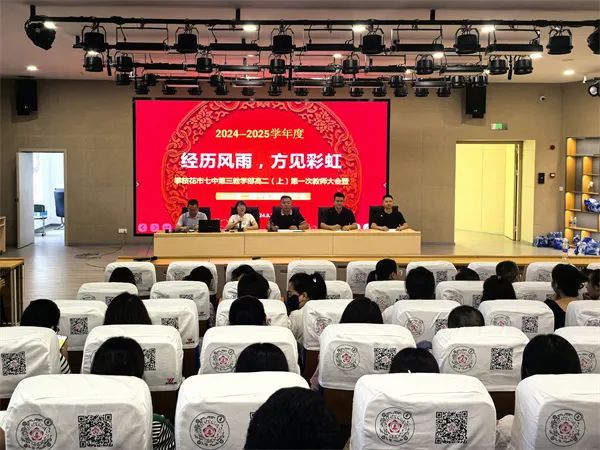 新学期,新气象。为了总结经验,提升教学质量,明确新学期的工作方向,市七中第三教学部于8月31日下午在花城校区报告厅举行教师大会暨考试成绩分析会。副校长赵均勇、年级管理团队和全体教师参会。