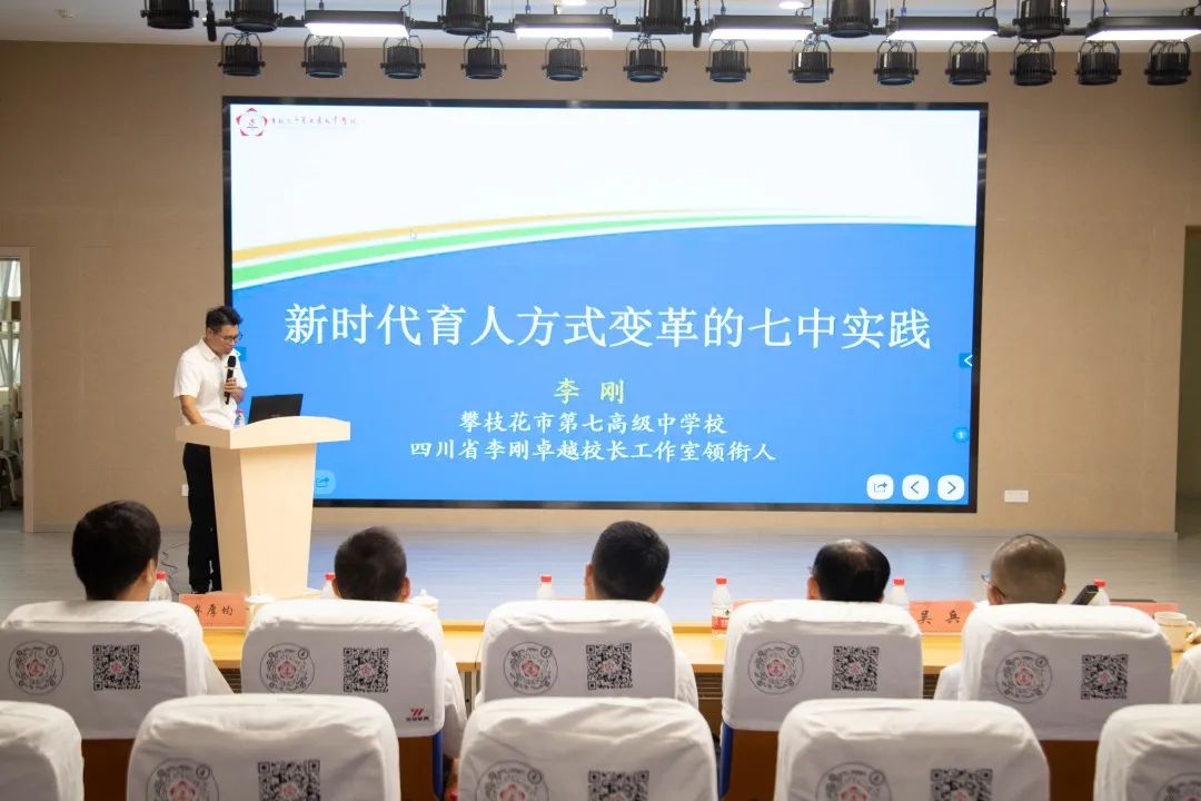 汇报会上,市七中党委副书记、校长李刚以《新时代育人方式变革的七中实践》为题,从学校发展历程、助推县中发展的措施、学校办学取得的成效以及对未来的展望4个方面进行了汇报。