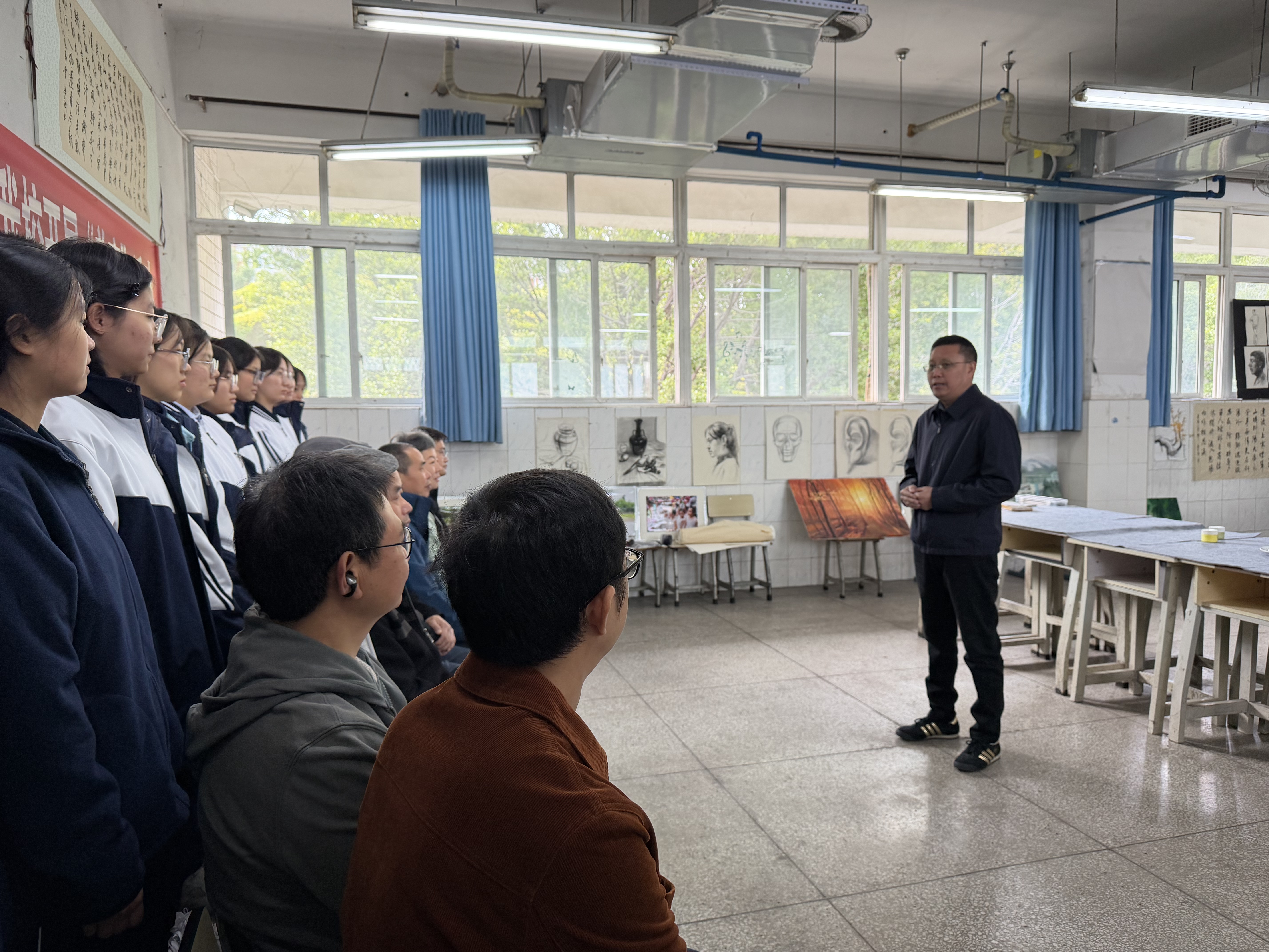 活动伊始,市七中副校长吴俊发表热情致辞。他代表学校对艺术家们的到来表示热烈欢迎与诚挚感谢,并强调,市七中始终将美育摆在育人工作的重要位置,积极构建全方位、多层次的美育体系。他表示,此次艺术家走进校园,不仅为学校美育注入了新鲜活力,更搭建起学生近距离感受艺术、与名家对话的珍贵平台。