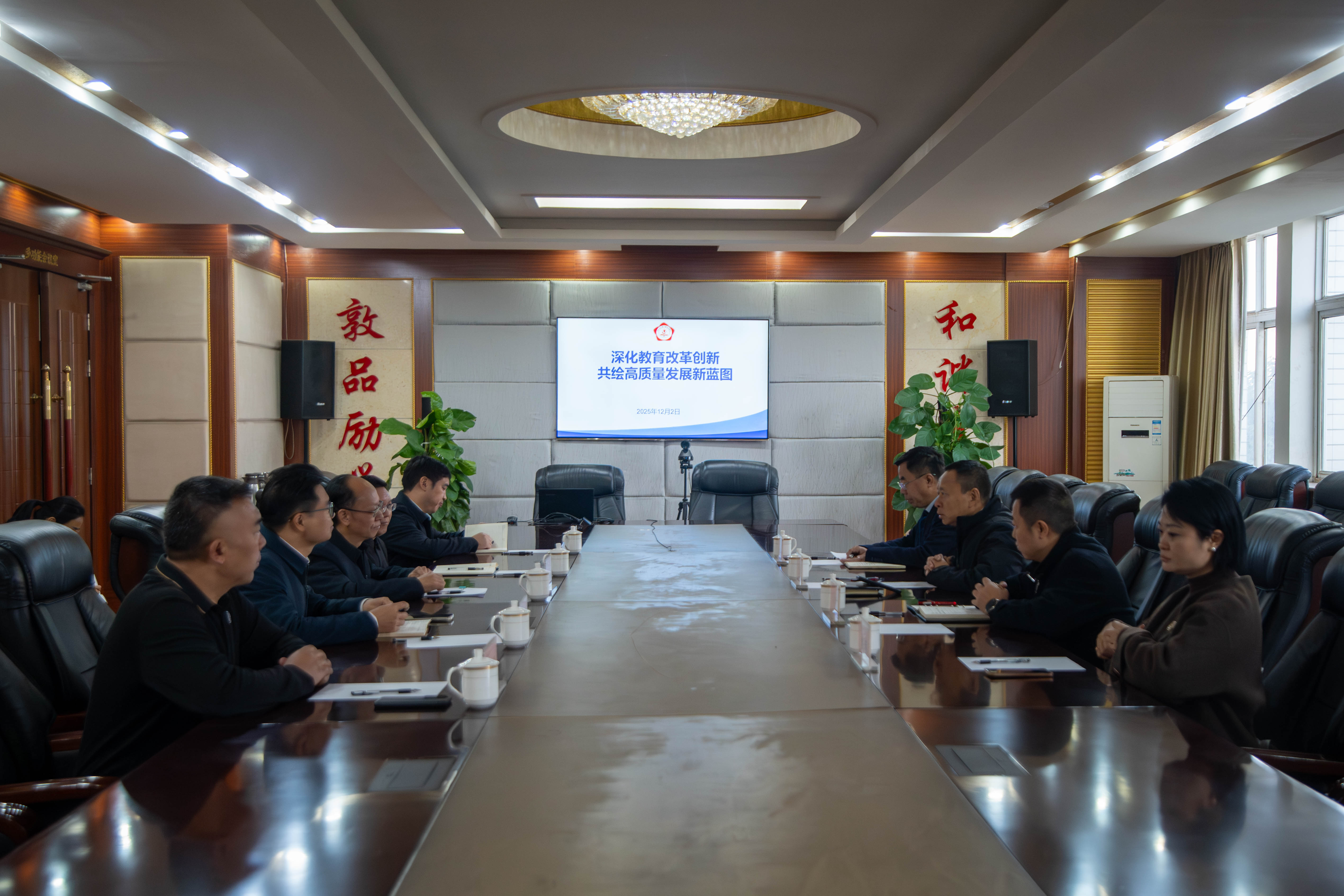 2025年12月2日上午,攀枝花市西区区委书记胡昱冰带领区委常委、区委组织部部长肖擎宇,副区长吴伟、区教育和体育局局长杨艳莅临攀枝花市七中西城校区,围绕“深化教育改革创新,共绘高质量发展新蓝图”主题开展调研。市七中党委书记杨鸿,党委副书记、校长李刚,副校长吴俊、赵均勇、牟厚均陪同。