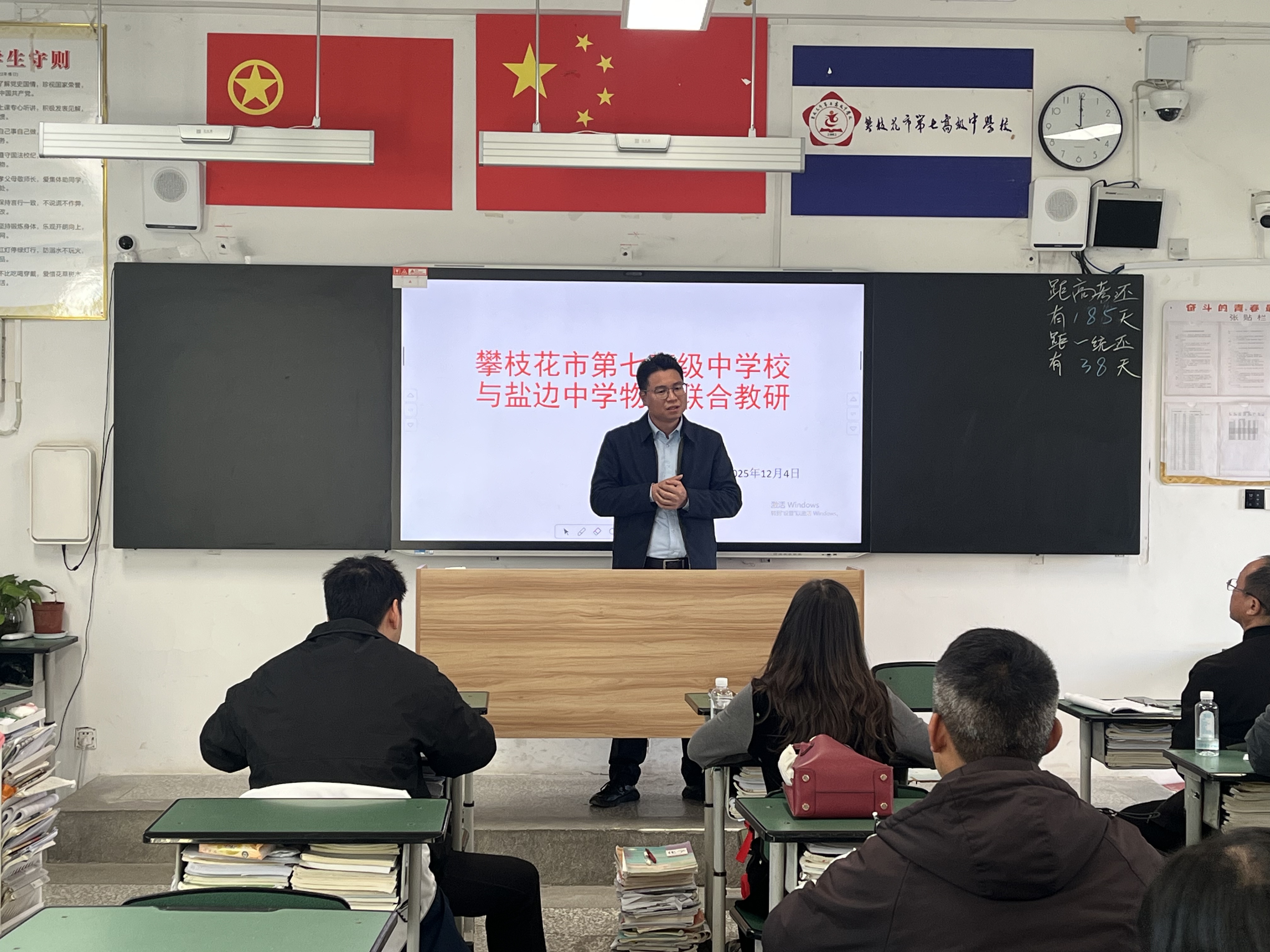 冬意渐浓,研途暖心。为进一步深化攀枝花七中与盐边中学校的教育发展共同体建设,聚焦高中物理学科教学提质,促进两校物理学科教育教学深度交流与优质资源共享,近日,攀枝花七中高中物理学科教师在李刚校长带领下,齐聚盐边中学校,开展了一场务实高效、靶向精准的高中物理联合教研活动,为两校物理教学高质量发展注入新活力。