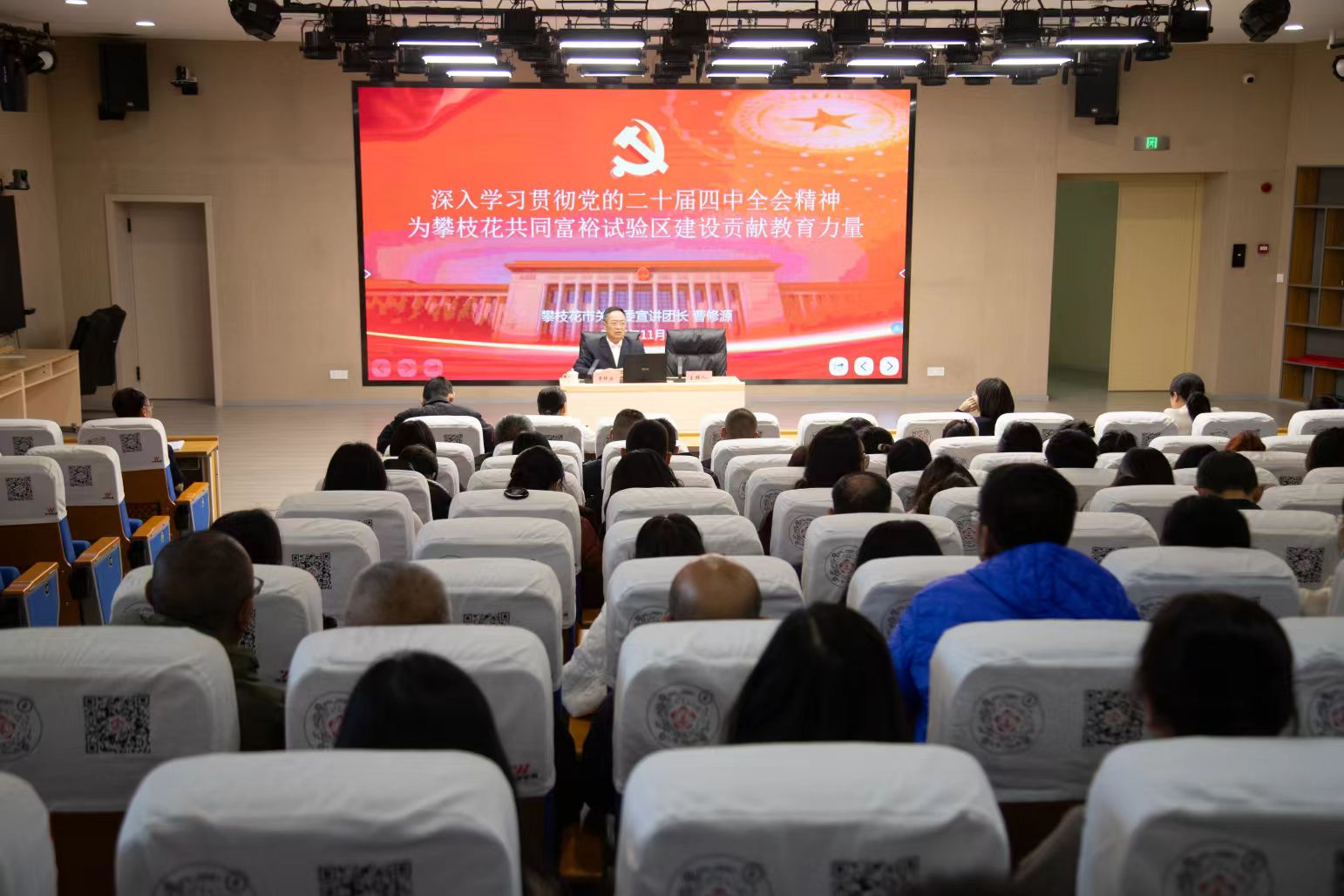 为深入学习贯彻党的二十届四中全会精神,准确把握“十五五”时期国家发展蓝图与战略部署,2025年12月15日下午,攀枝花市第七高级中学校在花城校区4楼会议厅举办了专题宣讲会。本次宣讲由攀枝花市关工委宣讲团团长曹修源同志主讲,学校党委书记杨鸿主持。