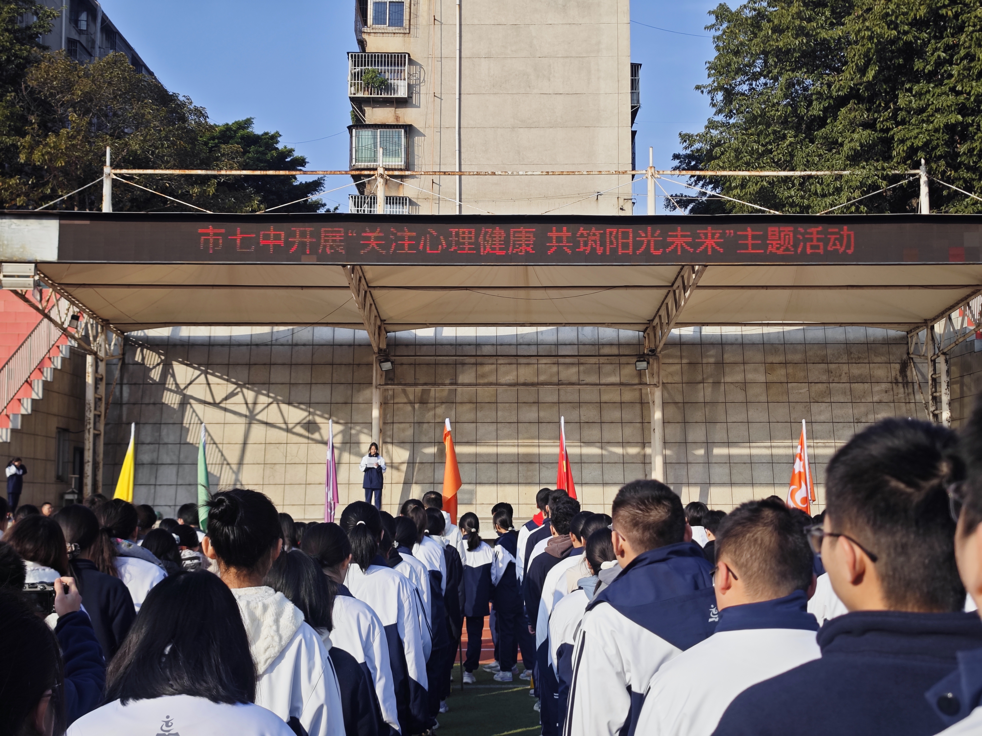 为引导学生关注心理健康,以积极心态应对成长挑战,2025年12月15日,市七中举行了“关注心理健康 共筑阳光未来”主题升旗仪式。