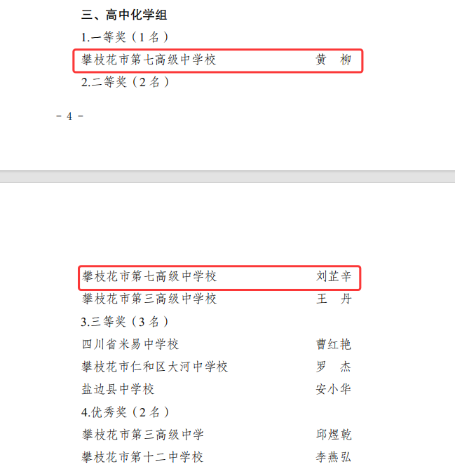 近日,2025年攀枝花市中小学青年教师教学竞赛市级决赛结果揭晓。在竞争激烈的高中化学组赛场,市七中黄柳、刘芷辛两位教师凭借扎实过硬的专业素养和沉稳出色的发挥荣获高中化学组一等奖和二等奖,充分展现了我校青年教师精湛的教学实力与昂扬向上的蓬勃朝气。