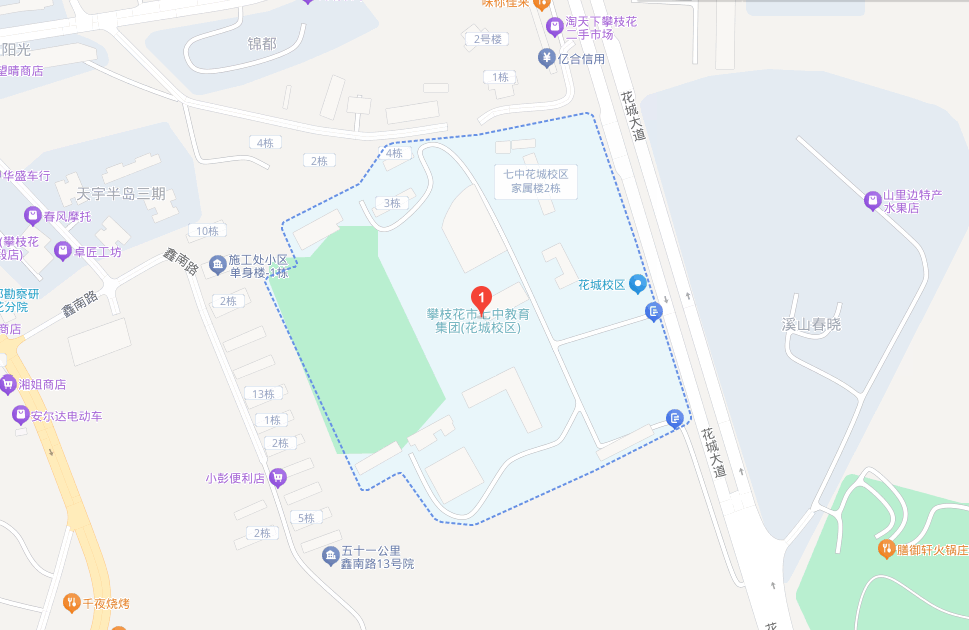 1.攀枝花市七中(花城校区)百度地图:攀枝花市仁和区华阳路66号