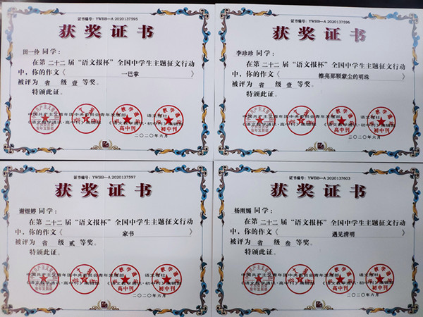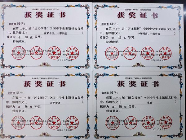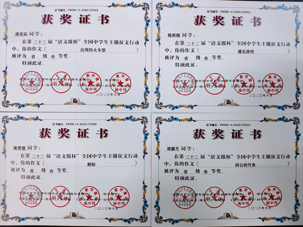 高2022届语文组发动学生踊跃投稿,组织语文老师指导有写作特长的学生积极参赛,最终斩获佳绩。这与我校长期以来坚持开展学科特色活动、注重培养学生的学科特长紧密相关。