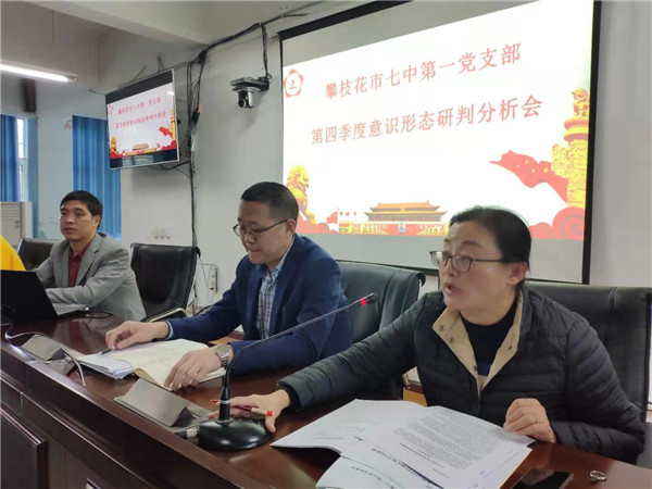 12月15日下午,我校第一党支部在博通楼二楼会议室召开2020年第四季度意识形态研判分析会。会议由第一党支部书记陈晶主持,学校党委委员、分管副校长代座城同志及全体支部党员参加。