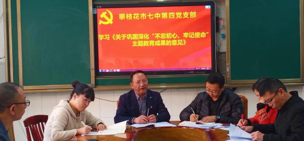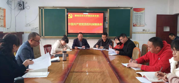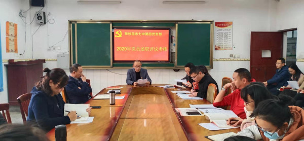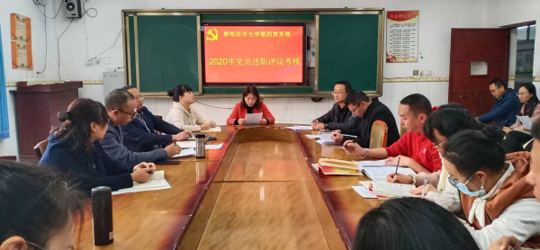 2020年12月22日下午,市七中第四党支部在花城校区初中部一楼会议室召开组织生活会, 谢子明副校长和第四党支部全体党员同志参加本次组织生活会,生活会由第四党支部书记徐子耀同志主持。