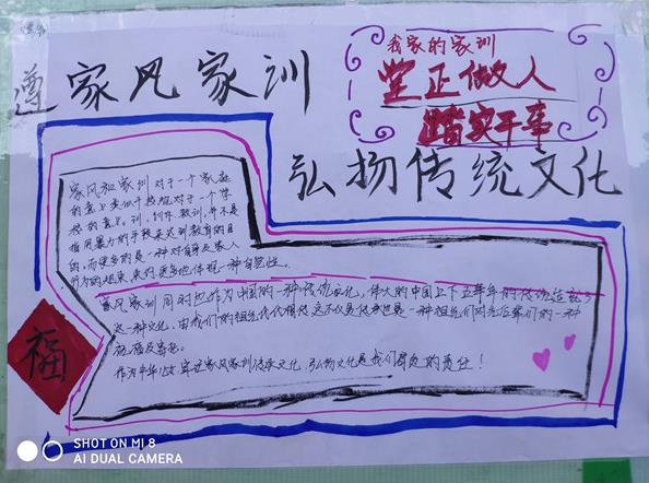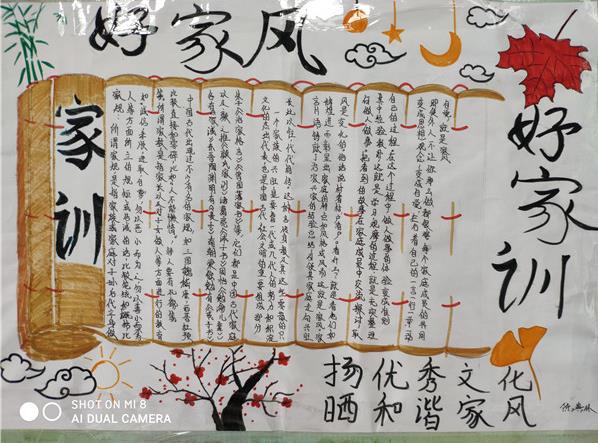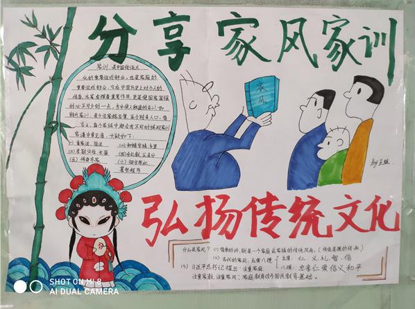 在活动中,同学们发现自己的家风家训中其实就蕴含了中国传统文化的精神内涵,也是社会主义核心价值观的具体体现;无论是品性方面的修身养性,还是求知方面的笃志明理,抑或立业方面的守正创新,各家的家风家训都是从中国传统文化的沃土中生根而来。